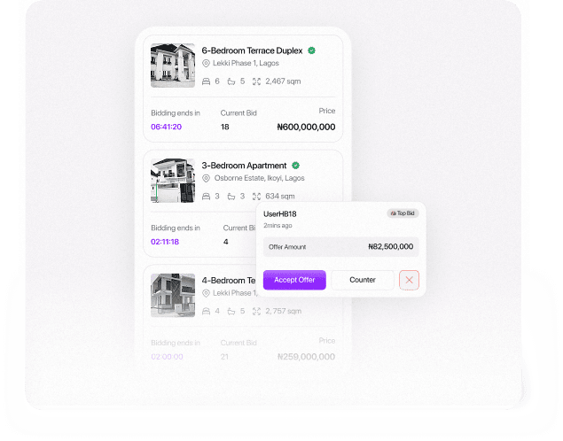 List your property on our secondary marketplace. Connect with other diaspora buyers through our secure bidding and transfer system